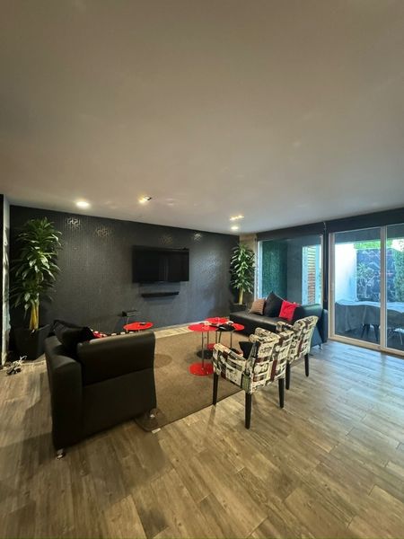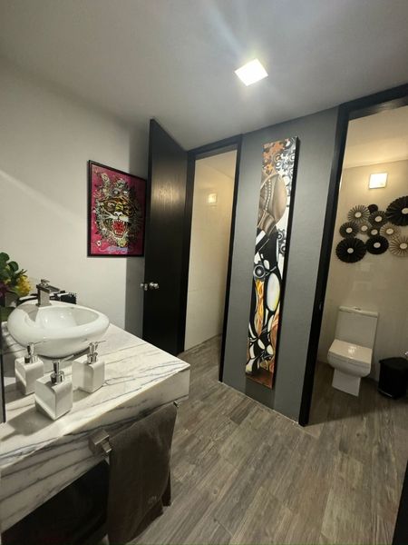 En planta baja 1/2 baño, recibidor, amplio comedor, y sala, cubo traga luz con jardín interno, amplia y elegante cocina, área de despensa, cuarto de lavado, cuarto de servicio y estacionamiento