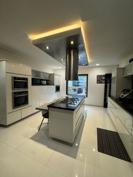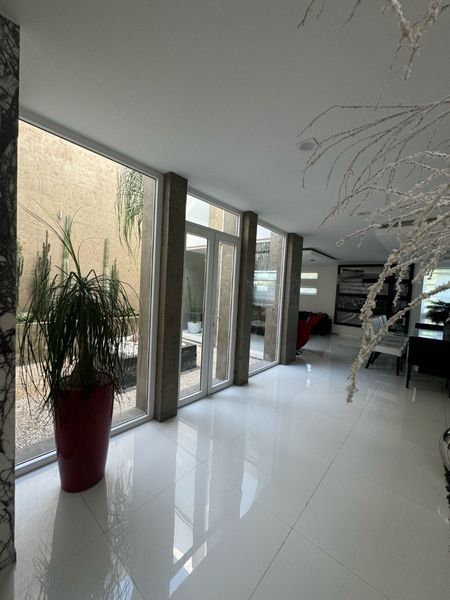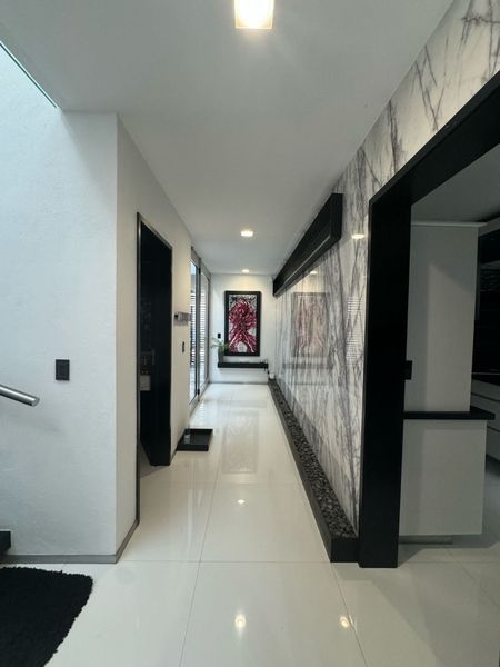 La casa tiene sistema de alarma, sensores de movimiento, elevador, cisterna, sistema de tratamiento de agua, apagadores de digitales, aire acondicionado en todas las áreas, cerca electrificada, paneles solares y acabados premium.