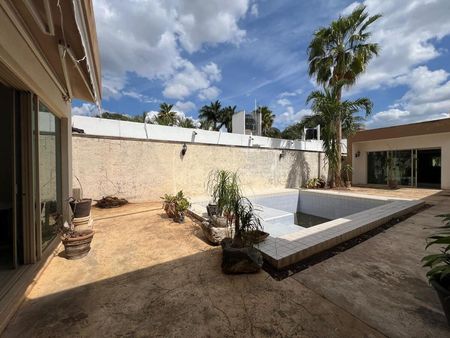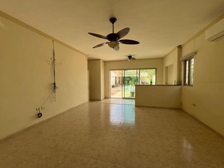 Terraza frente a la alberca con ventilador y a/a.