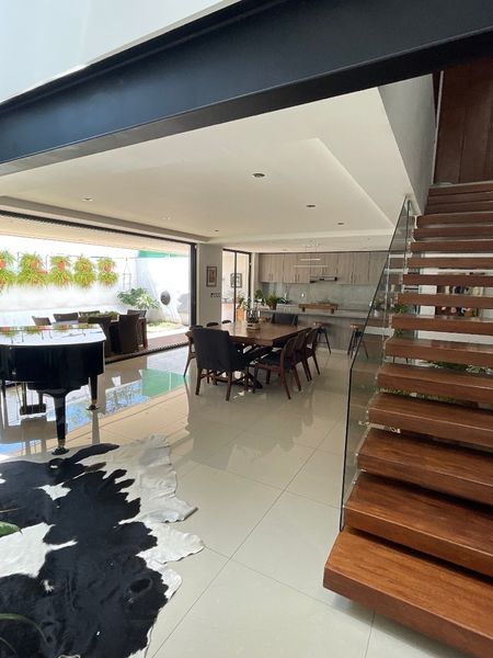 Planta baja : cocina, sala , comedor, estudio , 1/2 baño, cto servicio con baño completo, lavandería , jardín , terraza