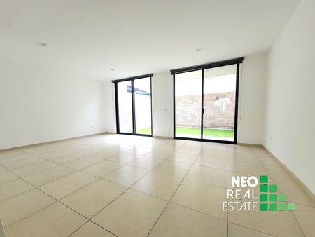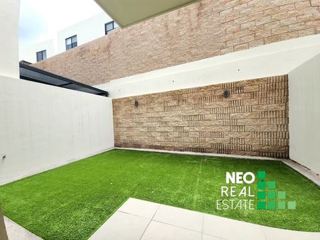 PB: amplia estancia de sala y comedor, medio baño , cocina equipada con cubierta de cuarzo, gran jardin con terraza, area de lavado techada, 2 lugares de estacionamiento.