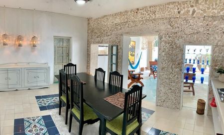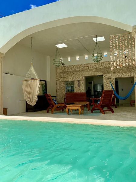 Esta hermosa casa ofrece la posibilidad de disfrutar de momentos inolvidables en cualquiera de las 5 habitaciones que ofrece, todas con baño privado, aire acondicionado, ventilador de techo, muebles antiguos restaurados de cedro o tzalam, puertas antiguas de cedro y pisos originales.