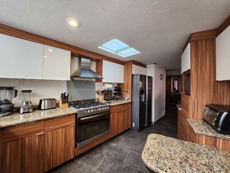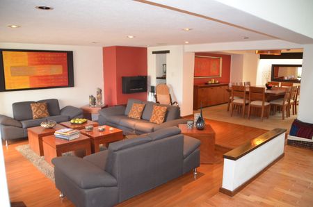 Preciosa casa en estilo "mexicano moderno" con vista a su jardín de 100 metros cuadrados. Esta casa se encuentra en un conjunto muy seguro y acogedor de 25 casas. Diseñada en dos niveles principales y dos medios niveles. Los ventanales del antecomedor y sala se abren por completo para integrar estas áreas con el jardín. La casa cuenta con una terraza muy acogedora que se encuentra entre la sala y el jardín y que integra muy bien en reuniones grandes.