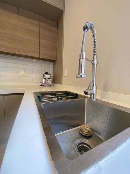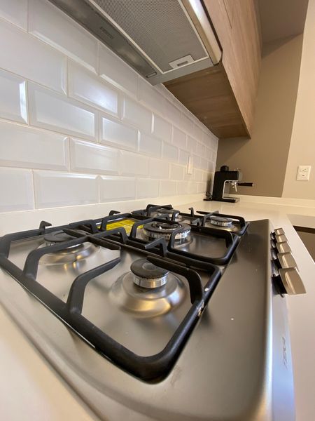 •Cocina equipada con campana de acero inoxidable, estufa, horno, despensa, puertas para almacenar, barras de granito, e isla desayunadora con espacio para bancos y almacenamiento.