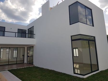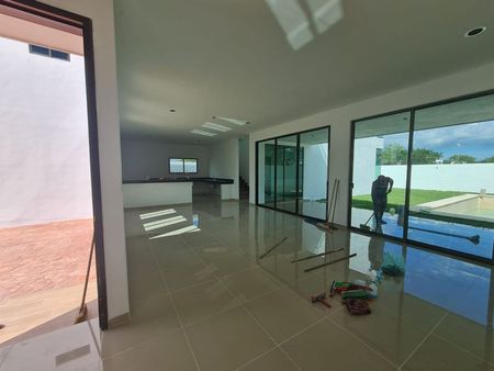 Hermosa Casa en SAN DIEGO CUTZ con 4 recamaras , al Norte de la Ciudad , zona muy tranquila, a 8 minutos de plaza la isla Mérida, con vías de acceso por conkal o chablekal . La casa cuenta con espacios muy amplios e iluminación además de la altura de sus techos de 3 mts.