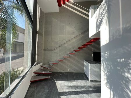 La propiedad cuenta con cisterna de 10,000 lts. instalación de gas completa con tanque de 300 lts., calentador de gas L.P. de depósito de 152 lts., iluminación exterior controlada con fotoceldas, equipo hidroneumático con motor de 1 hp y con tanque de 100 lts.; la cocina integral está diseñada con materiales de primera calidad y de lujo, con cubiertas de granito, gabinetes con acabado laminado de importación y herrajes para puertas y cajones de cierre lento; los pisos de las tres plantas son de porcelanato importado; mescladoras y accesorios de baños, marca Helvex, cubiertas de lavabos de baños en mármol de importación y con ovalines de cerámica también importados; canceles de baño con cristal templado; los pisos de las recamaras son de madera solida de Bambú en duelas de 20mm. de espesor; iluminación con lámparas importadas y tecnología Led; carpintería en melaninas de distintos acabados en puertas de comunicación, closets, vestidores, closet de blancos y alacena; puerta de acceso en cristal templado de 12 mm y chapa de seguridad; acabados importados en pisos y muros de baños; cancelería de aluminio natural en línea de 3” y cristal de 6 mm.; barandales exteriores en acero inoxidable y cristal en diseño especial; barandales interiores en acero inoxidable.