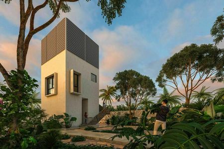 Parque central con plantas endémicas de la costa yucateca y un andador de 200 metros lineales