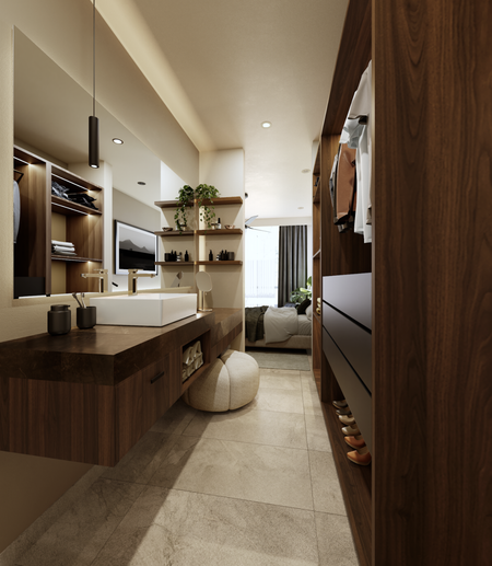 • Recámara 1 con clóset vestidor y baño.