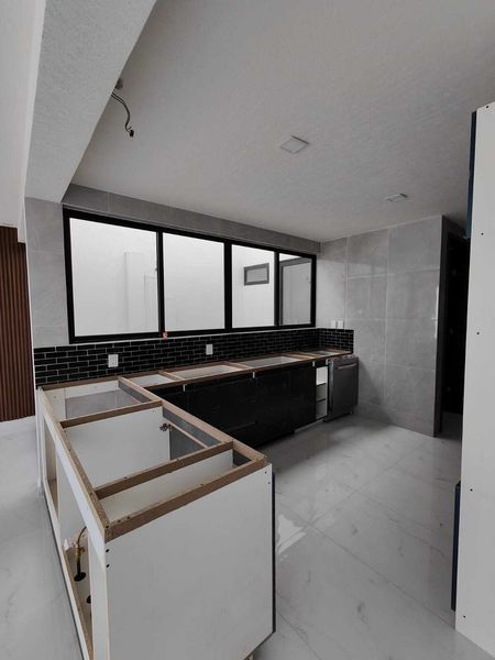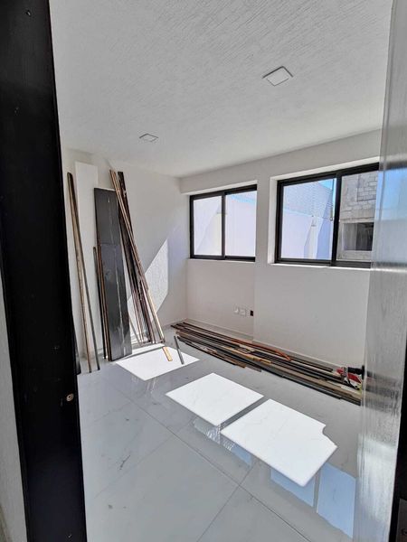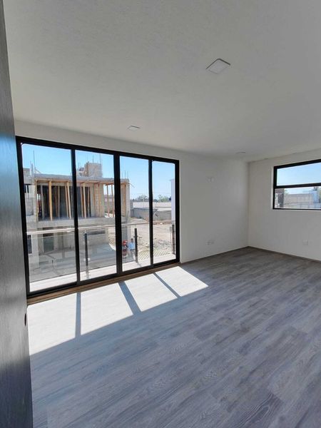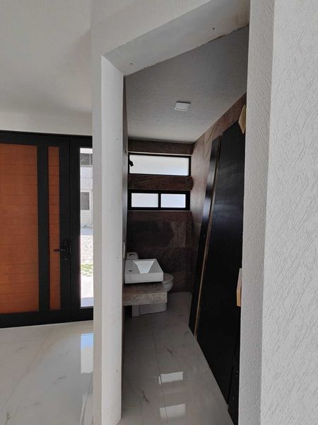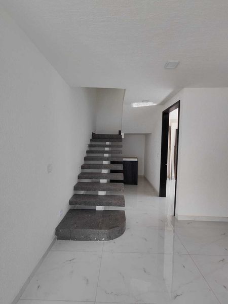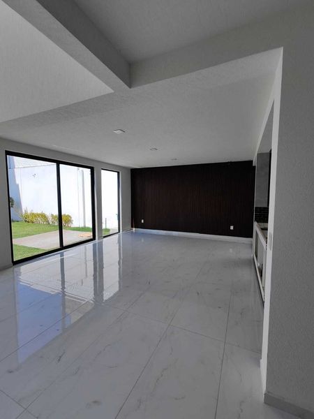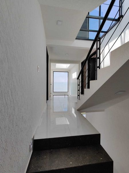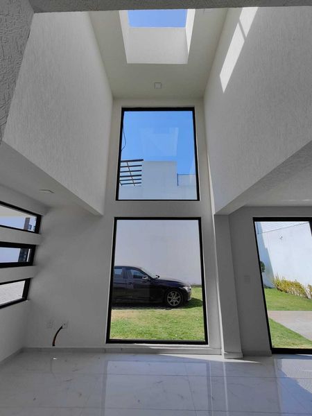 Estacionamiento, Jardín, Sala Doble altura, Comedor, Cocina Integral barra de granito, Mini Bar, Escaleras flotantes, Cuarto de Estudio o Recamara, Cuarto de Servicio, Medio Baño.