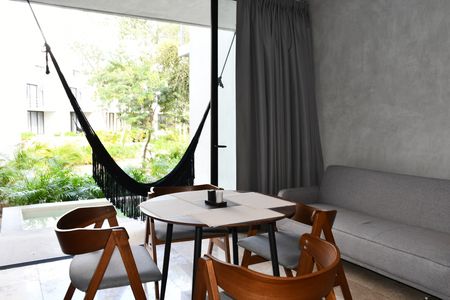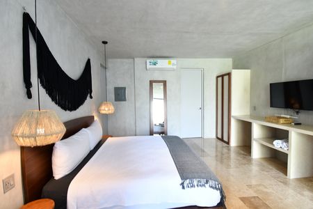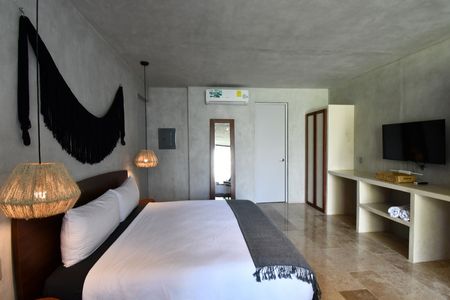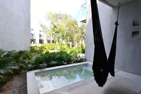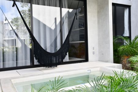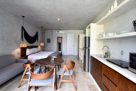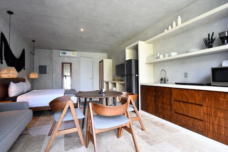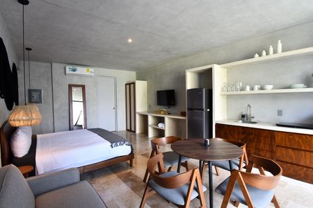 Este encantador estudio en planta baja está completamente equipado para estancias mensuales, semestrales o anuales. Diseñado para quienes buscan confort, privacidad y conexión con la naturaleza, cuenta con terraza y alberca privada, además de ofrecer una relajante vista a la alberca principal del complejo.