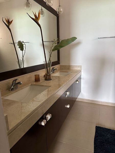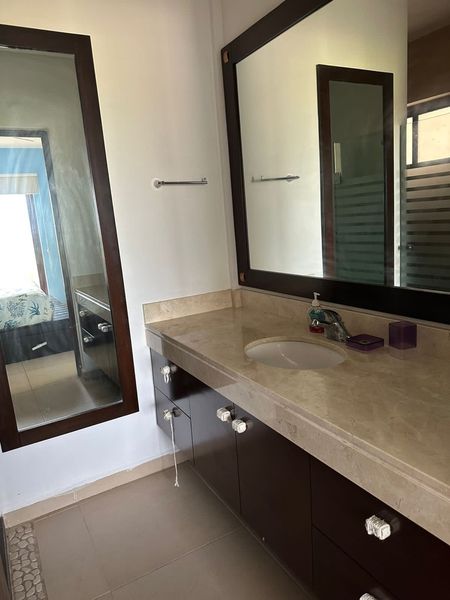 *Cuarto principal: cama king con cabecera, burós, mueble cajonera y para tv, closet vestidor y baño con cristal templado, barra lavabo mármol y lámparas