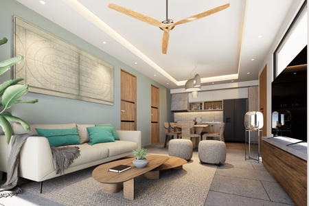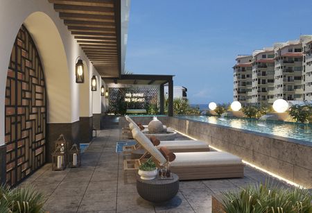 Beautiful condo just two blocks from the beach, located on the second floor at the rear of the building. It offers 64.95 m² of interior space and a large 24.00 m² terrace with a hot tub included. The property features 1 bedroom and 1 full bathroom with top-quality finishes. The kitchen is equipped with a range, hood, garbage disposal, dishwasher, microwave, and refrigerator. The laundry closet includes a washer and dryer. Automatic blinds and a storage unit in the basement are also included. The price is set at $9,831,365.63 MXN and includes a 15% discount with an 80% down payment and 20% upon delivery. Different discounts and payment plans are available.