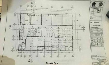 Ground floor : restaurant with capacity of +/- 50 tables (+/- 200 persons) - 15 metres front on 5th avenue and 19 metres front on 24th street