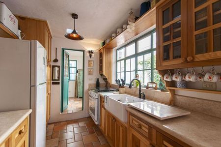 This cozy little house is located in the centro and has an open plan kitchen dining area and small living room which overlooks a flower patio. Just beyond is a separate laundry room with washer/dryer.