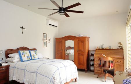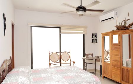 -Habitación secundaria 01, con baño completo, clóset y salida a la piscina.