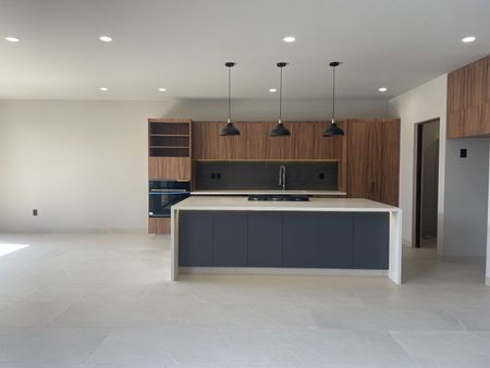 • Cocina abierta con isla de cuarzo, parrilla cristal, horno de gas y alacena