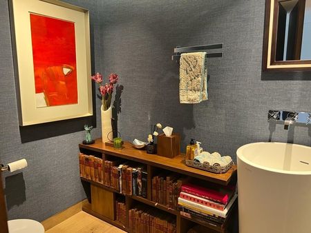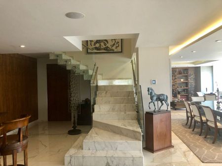 Increible PH en dos niveles . Sala muy amplia , comedor , biblioteca , Bar , Techos de doble altura , majestuosa escalera, Suite principal muy amplia con baños de marmol . Magnificos acabados . Pisos de madera en recamaras y pisos de marmol placas grandes en todo el departamento , baños de marmol importado . Luces indirectas en los techos. Preciosa cocina integral importada . Los muebles no están incluidos. Son como referencia y así estaba decorado.