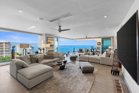 Discover the gem of Conchas Chinas with this stunning corner residence at Indah 10D, a luxurious sanctuary where the sea and sky blend into breathtaking panoramic views of Bahía de Banderas. This three-bedroom, three-bathroom condo redefines sophisticated coastal living, inviting you to experience a daily retreat by the ocean.