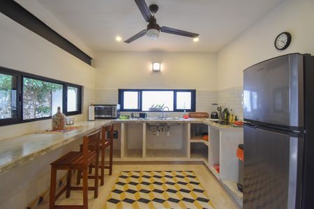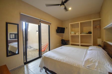 Equipamiento: Aire acondicionado, baño con tina, pisos de pasta, ventiladores, cancelería de aluminio, acabados de Chukum y pasta blanca. Se entrega amueblada con cama King Size, sofá, TV de 40”, comedor, estufa eléctrica, refrigerador y otros utensilios. Incluye bóiler eléctrico y wifi.