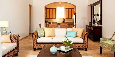 5 JUNIOR SUITE: Con más de 155 m2 a 177m2 ofrecemos habitaciones totalmente amuebladas con recamara con cama Queen Size con ventilador y aire acondicionado, sala y comedor con aire acondicionado y ventilador.