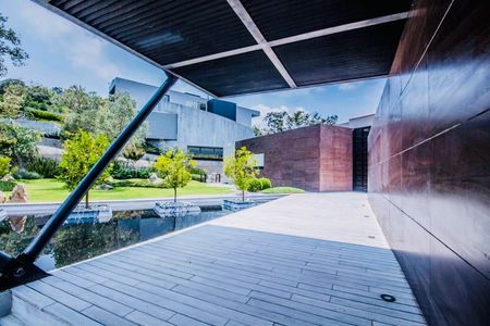 -ZONA INTIMA- Sala de estar familiar y TV muy grande, Estudio puede funcionar como gimnasio. Alberca preciosa con gimnasio con pérgola al aire libre. 4 recamaras espaciosas, preciosa vista profunda, 6 baños completos de gusto impecable,