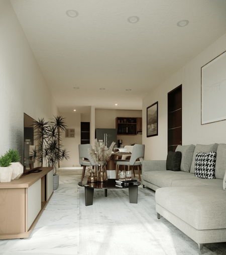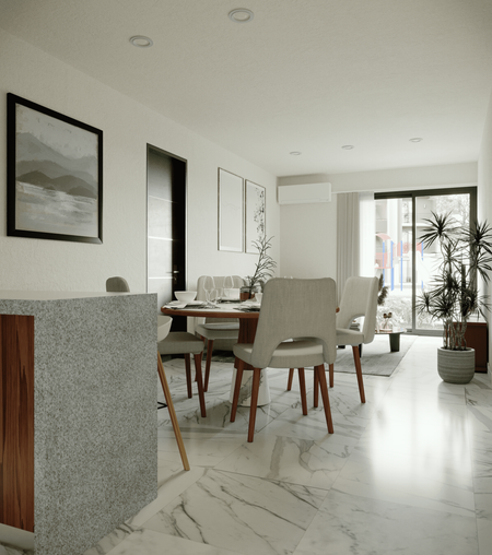 sala, comedor, baño completo, cocina integral equipada, barra de granito, área de servicio balcón o terraza etc.
