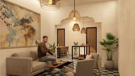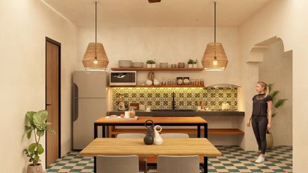 Remodelada con buen gusto y detalles como acabados de estuco, mampostería y pisos de pasta para darle un toque combinado entre lo contemporáneo y lo tradicional.