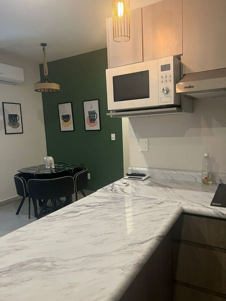 Cuenta con agua caliente, climas frio/calor , televisión con NETFLIX ,Internet, cocina equipada, amueblado lujosamente y con un cajón de estacionamiento.