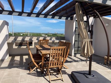 Cuenta con 3 recámaras, 2 baños completos, medio baño de visitas en el roof garden ,espacios modernos y funcionales.