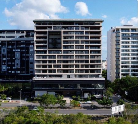 El edificio de uso mixto cuenta con locales comerciales , departamentos residenciales y amenidades.