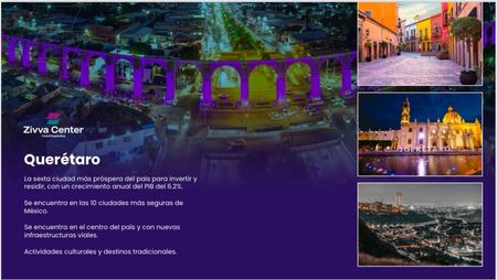 Invierte en esta plaza comercial, proyecto mixto con área comercial y oficinas, ubicada en el municipio de Corregidora, Querétaro. Este municipio tiene una de las economías con mayor crecimiento en México que es del 4.6% anual. La zona presenta un crecimiento demográfico del 3.1%, con US 152 M de ventas internacionales, donde el ingreso corriente promedio es alto.