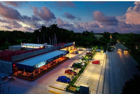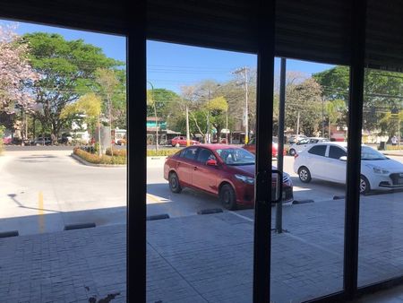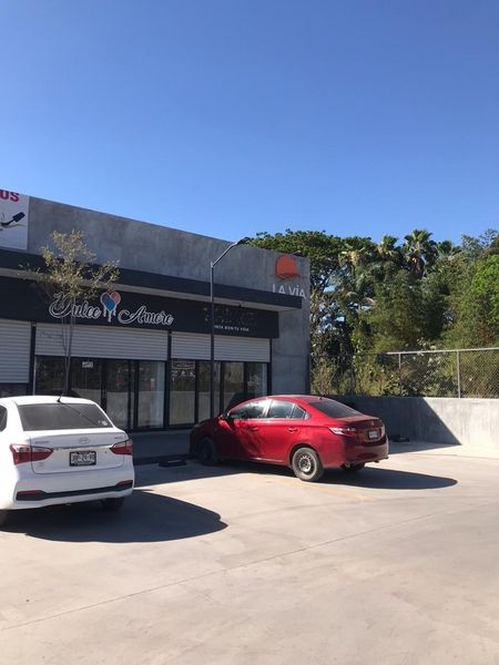 Local comercial a pie de carretera con estacionamiento amplio y gran flujo de automóviles.