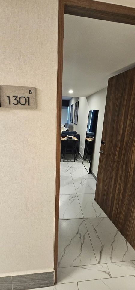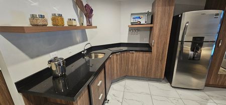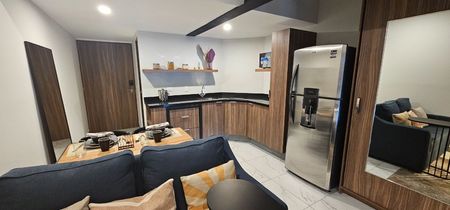 El departamento se entrega equipado con elegantes acabados, refrigerador, horno de microondas, parrilla eléctrica y persianas