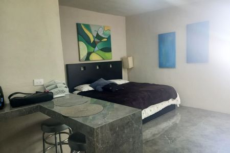 Cuenta con cama King Size, minisplit, terraza, cocineta con refri, enseres, baño completo. Hermosa vista y amplio estacionamiento.