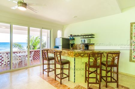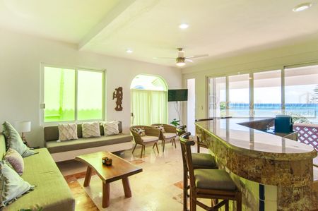 Disfrute de las espectaculares vistas al mar desde casi cada espacio de este encantador departamento de 2 habitaciones y 2 baños frente al mar. Se vende completamente amueblado y equipado con todas las amenidades prácticas que usted esperaría, como ventiladores de techo, aire acondicionado y Wi-Fi. Cuenta con un diseño amplio y abierto, cocina totalmente equipada con isla, luminosa sala de estar y un balcón cubierto con vistas al mar, perfecto para disfrutar de su café y desayuno por la mañana o una copa de vino al atardecer. El edificio cuenta con acceso controlado y seguridad las 24 horas, además de una alberca comunitaria frente al mar con numerosas tumbonas para disfrutar del sol caribeño y palapas para refugiarse del calor.