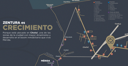 Zentura está ubicado en Cholul, una de las zonas de la ciudad con mayor dinamismo y desarrollo en el boom inmobiliario que vive Mérida.