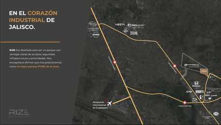 Localizado en el corredor industrial de El Salto, a sólo 6 kilómetros del Aeropuerto Internacional de Guadalajara.