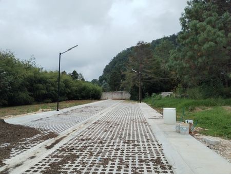 Cuenta adicionalmente con caseta para vigilante, portón de acceso, área común con estacionamiento para visitas (dos autos), servicios de agua, luz, drenaje y megacable ocultos y listos en cada lote, lámparas en calle con panel solar.