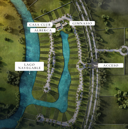 Riviera es una privada exclusiva con 125 lotes residenciales, que se encuentra dentro de Country Lakes, un macroproyecto con desarrollos habitacionales, pórticos de acceso diseñados por Artigas Arquitectos, town center, casa club, entre otros.