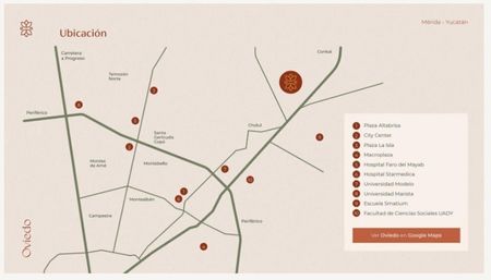 Oviedo es un desarrollo ubicado en Mérida Yucatán, conformado por 16 lotes y casas residenciales cuyo fin es brindar el refugio ideal, un perfecto escape del caos de la ciudad.