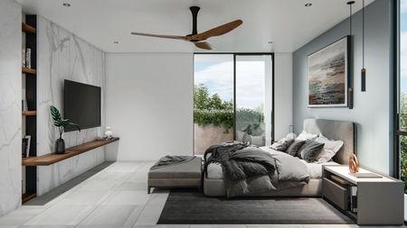 -1 Recamara principal master con balcón de 24.87 m2, baño completo de 5.50 m2, y un closet vestidor de 8.35 m2