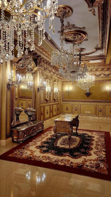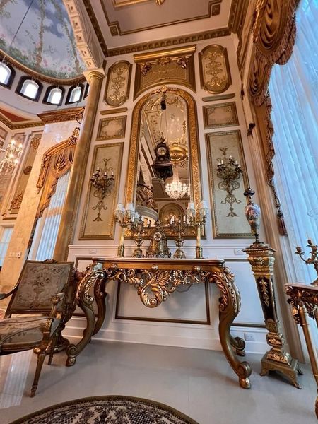 Paredes y techos con marcos y relieves laminados en oro y las pinturas realizadas