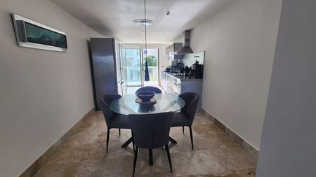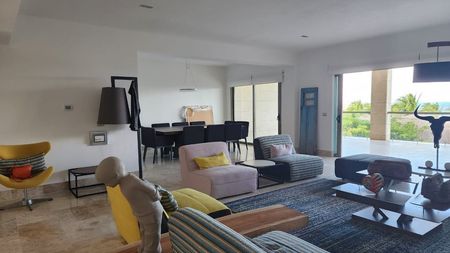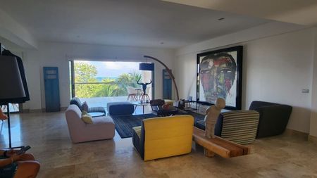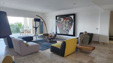 El departamento cuenta con una amplia terraza desde la cual se tiene una vista increíble al mar, tiene 3 amplias recámaras, todas con baño y vestidor, la principal con tina y acceso directo a la terraza; dispone de cuarto de lavado, cuarto de servicio, estancia y comedor con vista al mar, bodega y 2 espacios de estacionamiento.