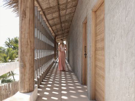 Diseñado con un enfoque en la armonía con la naturaleza, rodeado de exuberantes áreas verdes y respetando el ecosistema local, este se integra cuidadosamente con el entorno natural y presentan acabados de alta calidad que mezclan lo rústico con lo contemporáneo.