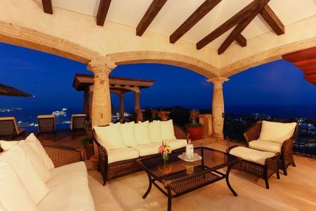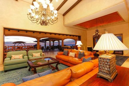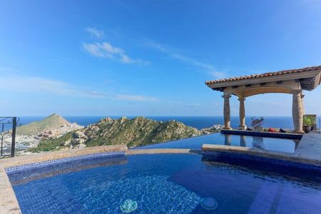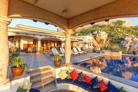 Let the spectacular vistas stretching out before you be your muse as you relax in the stunning infinity-edge swimming pool at this beautiful Villa. From its soaring perch in the Pedregal community, this one-of-a-kind estate offers unparalleled vistas stretching over Cabo San Lucas Bay, Land's End and the marina. Nestled into a rocky hillside, this beautifully designed hacienda-style home offers the utmost in comfort and style in a setting of truly dramatic beauty.