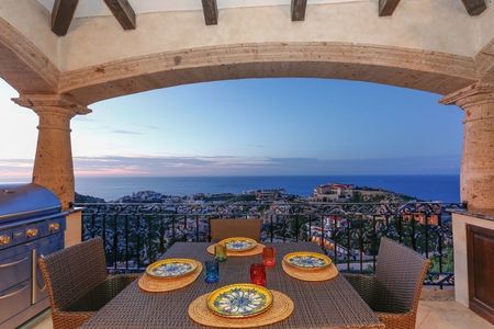 Outside, you'll feel like you're on top of the world as you float in your private swimming pool. Or, relax poolside and soak up the sunshine as you admire the vistas of sailboats, cruise ships and parasails on the bay. In the evening, gather around the fire pit with friends to enjoy a cocktail as the twinkling lights of Cabo San Lucas shine below you.