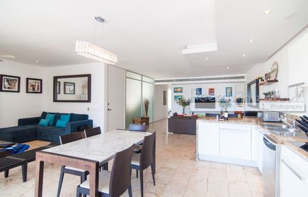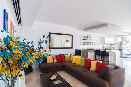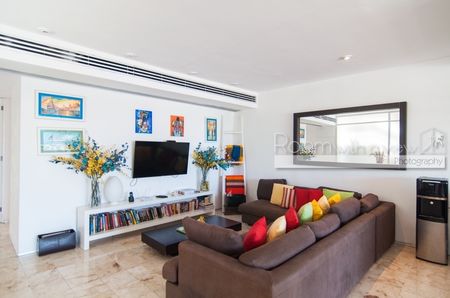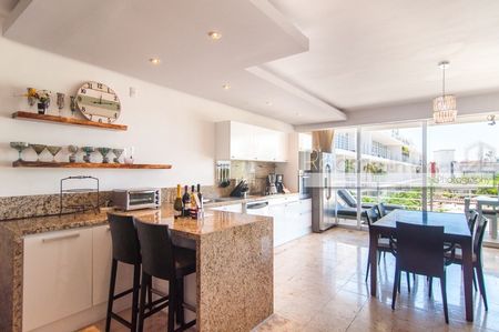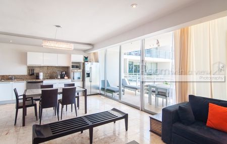 Este amplio e iluminado departamento de 2 habitaciones y 2 baños ofrece 177 metros cuadrados de espacio habitable. Cuenta con una sala de estar extra grande, una cocina completamente equipada con electrodomésticos de primera calidad y una amplia terraza cubierta con vistas a la alberca y al mar. Este es un lugar encantador para disfrutar de su café y desayuno por la mañana o relajarse con una copa de vino por la noche. La habitación principal cuenta con un vestidor con soporte para televisión, un lujoso baño en suite y un balcón privado. Este departamento está muy bien mantenido, con pisos de cerámica y acabados de alta calidad. Viene equipado con todas las amenidades prácticas que usted esperaría, incluyendo ventiladores de techo, aire acondicionado, ventanas antihuracanes, persianas de tormenta y una lavadora y secadora.