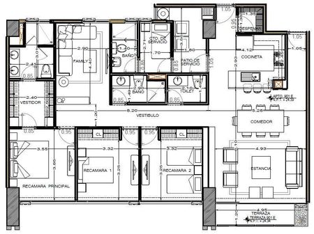 El departamento cuenta con 168 m2 de superficie habitable, 3 recámaras, la principal con vestidor, 2 baños y medio, amplia estancia y comedor, cocina integral, family room, terraza, cuarto de servicio con baño, patio, despensa, bodega y 2 lugares de estacionamiento.