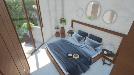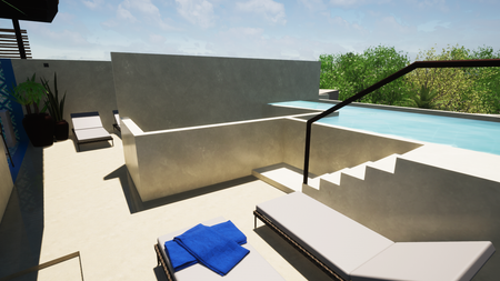 Este departamento se encuentra en el mero corazón de Aldea Zamá, en Tulum, destaca por su arquitectura moderna y de estilo minimalista, con un diseño que combina armoniosamente elementos naturales y contemporáneos. Las líneas limpias y los materiales rústicos como la madera, el concreto y la piedra local se integran para crear un ambiente orgánico y sofisticado.