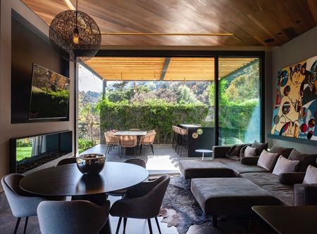 Family Room con comedor exterior y cocina